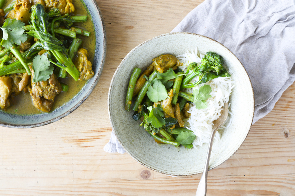 Kylling, karry og kokos – 3 ingredienser der står godt til hinanden.