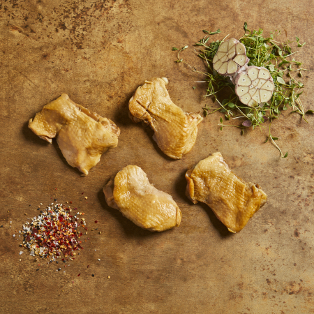 Den hele kylling skal færdigtilberedes, hvorimod vores røgede brystfilet, underlår og udbenede overlår ikke kræver videre tilberedning. Du kan finde tilberedningsforslag under de enkelte produkter.