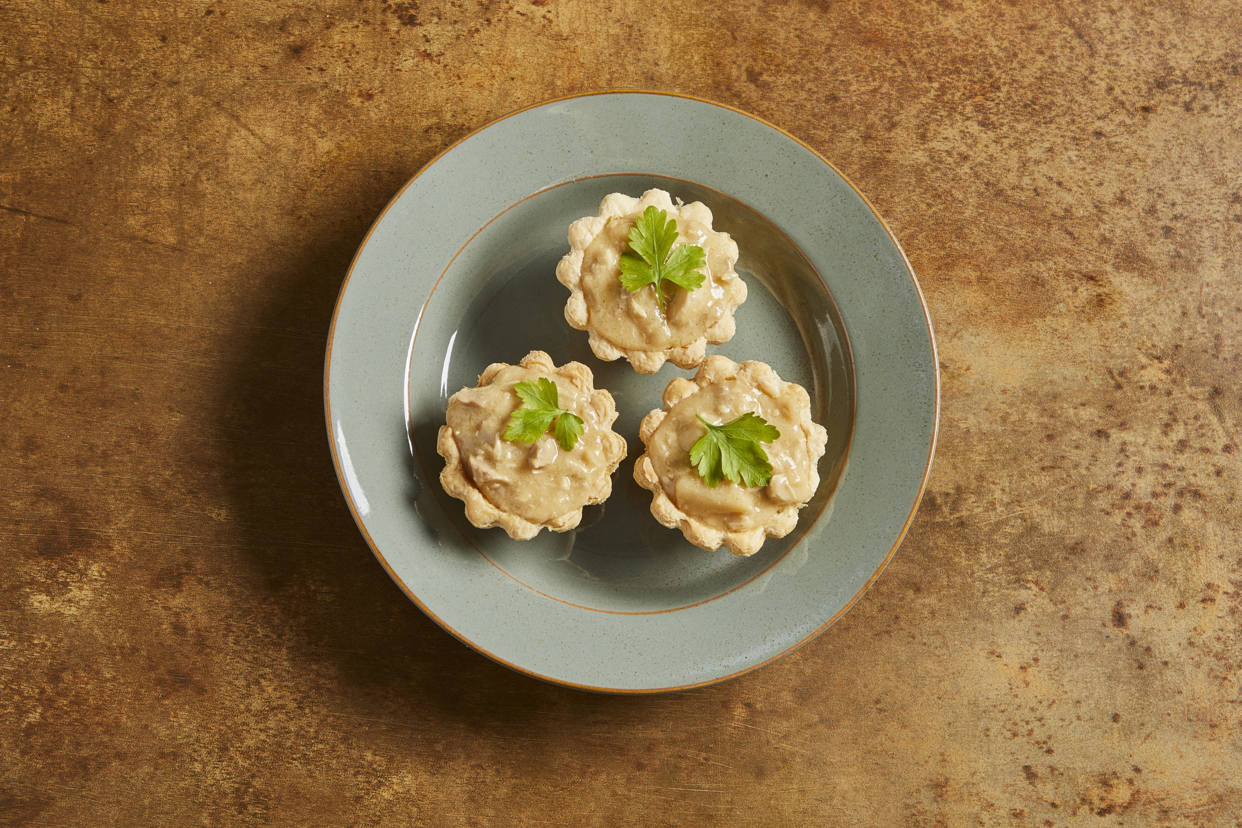 Tarteletfyldet er cremet og naturligvis med lækkert brystkød. (nok til ca 8 tarteletter).